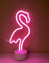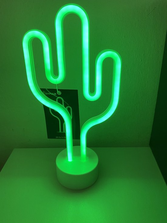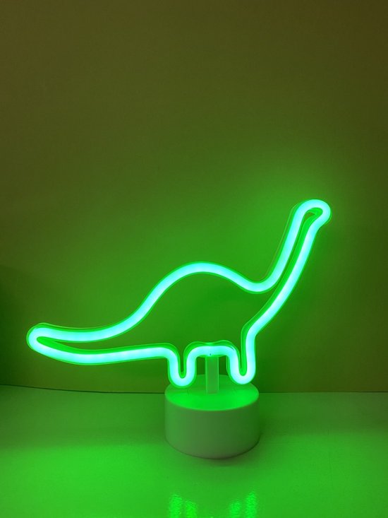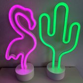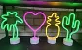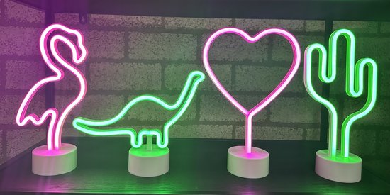 Lampes LED avec néon - Set de 4 pièces - Flamingo / Dinosaurus / Coeur / Cactus - Néon rose/vert - Fonctionne sur batterie et/ou USB - Lampe de table - Lampe de nuit - Éclairage décoratif - Accessoires de maison