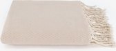 Ce jeté vert foncé ou vert mousse a un fond écru et une finition de franges nouées. Le jeté par ses dimensions convient parfaitement pour un lit 1 place ou pour une touche de déco sur un grand lit. Le toucher du jeté est souple.