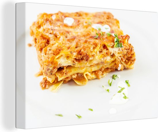 Lasagne sur toile fond blanc 2cm 90x60 cm - Tirage photo sur toile (Décoration murale salon / chambre)