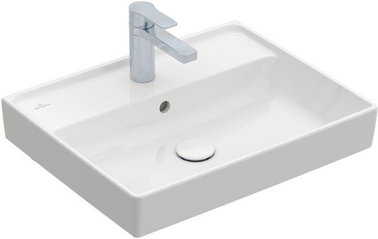 Lavabo 550x440 mm, avec trop-plein, trou de robinetterie, CeramicPlus, blanc alpin
