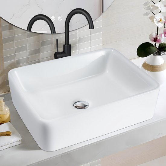 Lavabo NETTLIFE - Céramique Wit - 40 × 30 × 13 cm - rectangulaire - Montage mural - Lavabo suspendu - Lavabo de salle de bain - pour WC invités