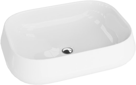 LAVITA® Lavabo à poser PASTEL Lavabo rectangulaire en céramique pour salle de bain et toilettes invités - 525x385x150 mm - Wit brillant - Lavabo à bord fin - Lavabo en céramique à poser sans trou pour robinetterie et sans trop-plein