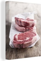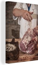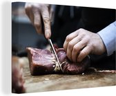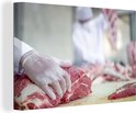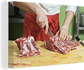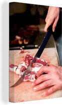 Le boucher découpe la viande en morceaux de toile 60x40 cm - Tirage photo sur toile (Décoration murale salon / chambre)
