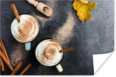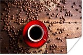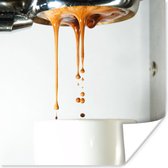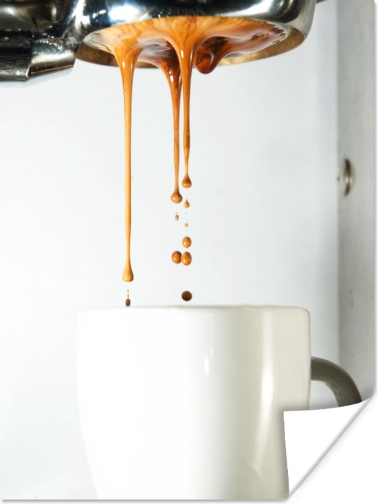 Le café coule de la cafetière dans la tasse de café Poster 120x160 cm - Tirage photo sur Poster (décoration murale salon / chambre) XXL / Groot format!
