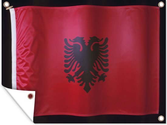 Le drapeau de l'Albanie sur fond noir Affiche de jardin 160x120 cm - Toile de jardin / Toile d'extérieur / Peintures d'extérieur (décoration de jardin) XXL / Groot format!