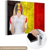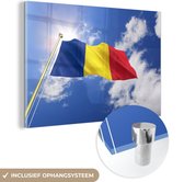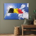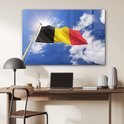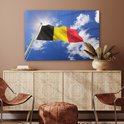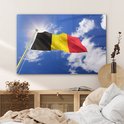 Le drapeau de la België flotte dans les airs Plexiglas 120x80 cm - Tirage photo sur Glas (décoration murale plexiglas)