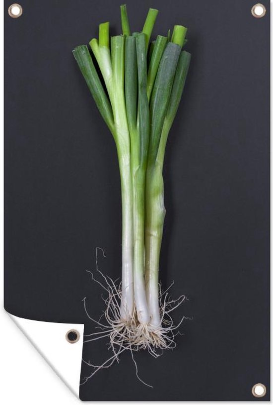 Le fameux oignon de printemps sur fond sombre Affiche de jardin 120x180 cm - Toile de jardin / Toile d'extérieur / Peintures d'extérieur (décoration de jardin) XXL / Groot format!