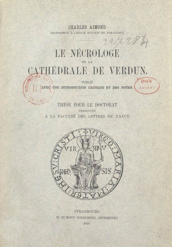 Le nécrologe de la cathédrale de Verdun Thèse complémentaire présentée à la Faculté des lettres de l'Université de Nancy