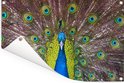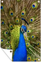 Le paon mâle exhibe ses plumes rouges Affiche de jardin 180x120 cm - Toile de jardin / Toile d'extérieur / Peintures d'extérieur (décoration de jardin) XXL / Groot format!