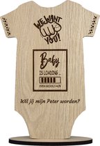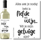 Le panneau comporte une belle gravure avec le texte : « Satisfaction du témoin garantie. Voulez-vous devenir notre témoin? 100 % qualité Premium – 70 % patience – 100 % amour. Le plus grand TÉMOIN du monde. Le message ludique et affectueux en fait un cadeau inoubliable que votre futur témoin chérira sûrement.