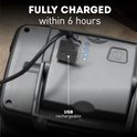 La lampe est équipée d'une protection contre les surcharges et les décharges excessives de la batterie. Même après 500 charges, la capacité est toujours de 80%. Une charge de batterie dure jusqu'à 11 heures.