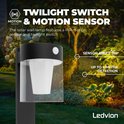 Ledvion - Lampe d'extérieur sur Solar LED , 0,5 W, 3000 K, IP44, Zwart et ronde, avec support. Capteur de mouvement, énergie solaire, économe en énergie et résistant aux intempéries
