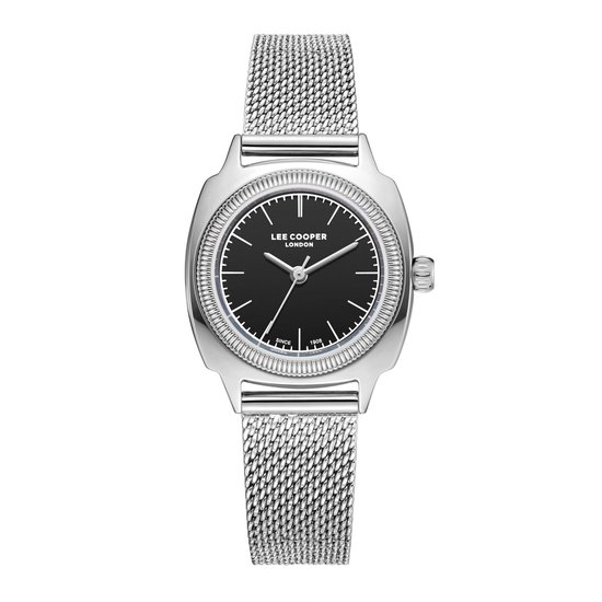 Lee Cooper 360 - Montre - Montre-bracelet - Analogique - Femme - Bracelet en acier milanais - Métal - Carré - Rond - Rayures - Argenté - Zwart - Wit