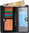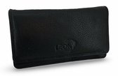 LeonDesign - 16-W1285-04 - femme - double rabat - portefeuille - noir - cuir grand modèle - nombreuses poches pour cartes et photos
