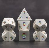 L'ensemble se compose d'un D4, D6, D8, D10, D%, D12 et d'un D20. Cela signifie que vous avez entre vos mains un jeu de poly complet, parfait pour tout jeu nécessitant des dés. Que vous soyez un joueur chevronné ou débutant, cet ensemble sera un excellent ajout à votre expérience de jeu !