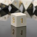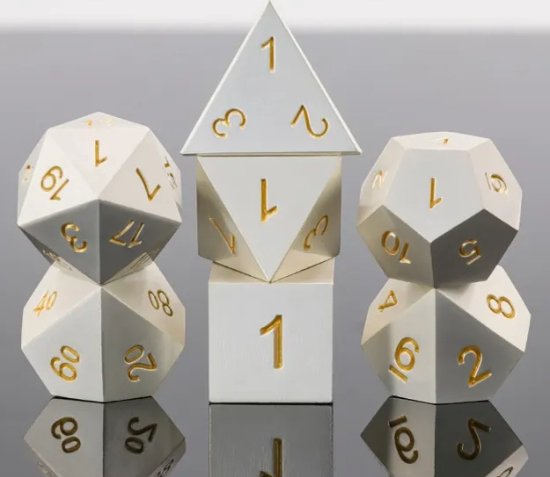 Ces dés sont en métal et ont une finition blanche brillante avec des chiffres jaunes, ce qui leur donne un aspect saisissant et élégant.