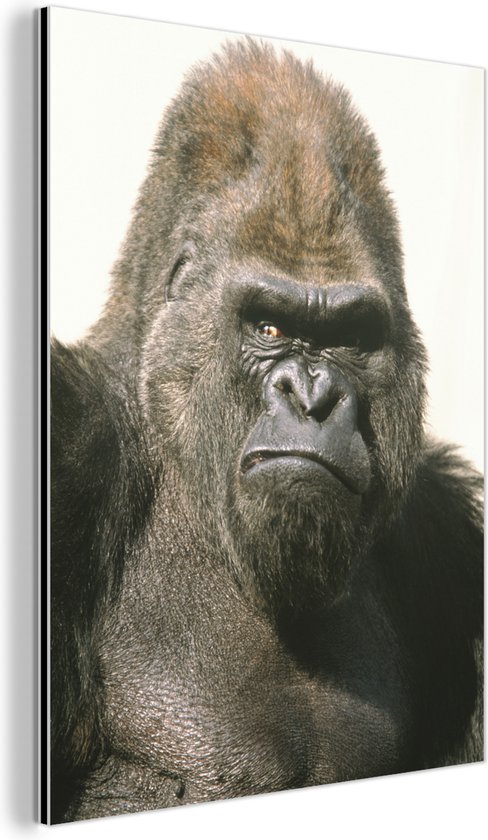 Les rayons du soleil brillent dans les yeux du Gorilla Aluminium 120x160 cm - Tirage photo sur Aluminium (décoration murale métal) XXL / Groot format!