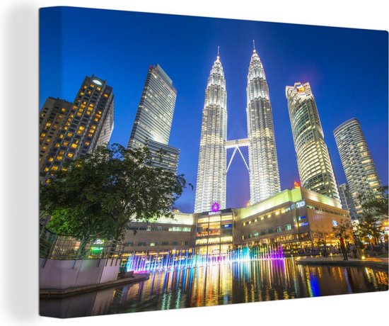 Les Tours Petronas illuminées en soirée Toile 60x40 cm - Tirage photo sur toile (Décoration murale salon / chambre)