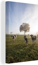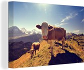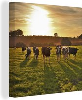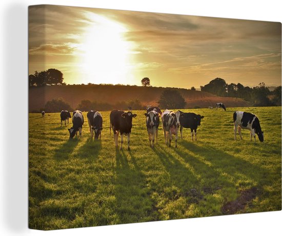 Les vaches paissent au coucher du soleil 30x20 cm - petit - Tirage photo sur toile (Décoration murale salon / chambre) / Animaux de la ferme Peintures sur toile