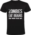 T-shirt amusant avec imprimé : les zombies mangent des cerveaux. Ne vous inquiétez pas, vous êtes en sécurité.