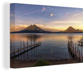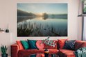 Lever de soleil au lac Toile 180x120 cm - Tirage photo sur toile (Décoration murale salon / chambre) XXL / Groot format!