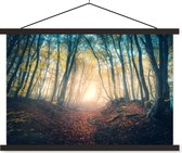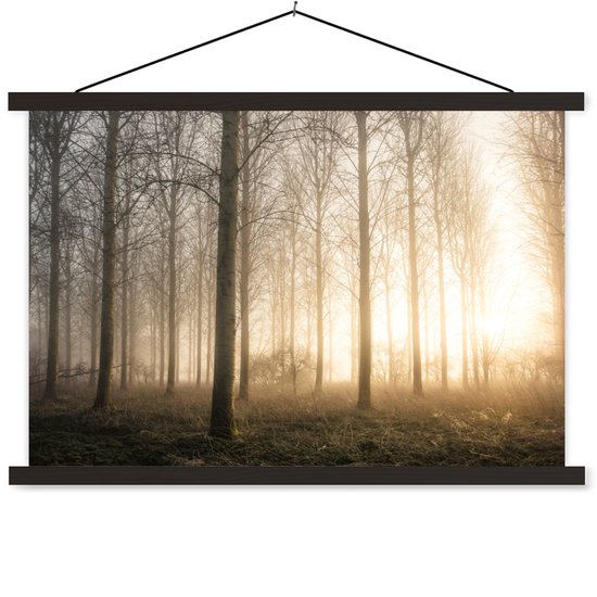 Lever de soleil dans une forêt brumeuse au Royaume-Uni affiche scolaire lattes plates noir 150x100 cm - Tirage photo sur poster textielposter (décoration murale salon / chambre)