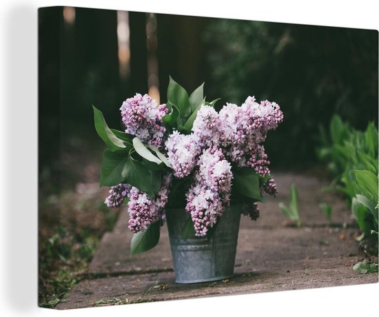 Lilas dans un seau 180x120 cm - Tirage photo sur toile (Décoration murale salon / chambre) / Peintures Fleurs sur toile XXL / Groot format!