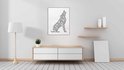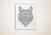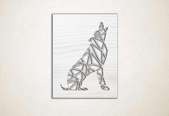 Line Art - Loup carré 5 - M - 77x60cm - Bois de frêne Blanc - décoration murale géométrique
