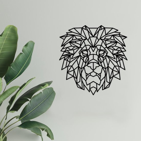 Lion géométrique Décoration murale MDF Zwart 410x422mm