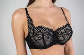 Soutien- BH , bonnets enveloppants. Naturel et agréable à porterCoques en broderie sur tulle, basque entièrement en dentelle Leavers de Calais. Haut du buste intermédiaire en tulle avec motif strass. Anneaux en métal argenté sur les bretelles. 74 % polyamide, 22 % polyester, 4 % élasthanne