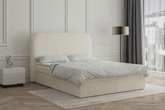 Lit à sommier tapissier 07 (Bonell, Topper, bouclé, lit double tête de lit rembourrée avec sommier à lattes) - Crème (Anthology 20)