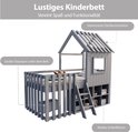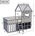 Lit cabane pour enfant 90x200, avec toit et fenêtre, avec espace de rangement ouvert, avec échelle d'escalade, lit superposé pour enfant en bois massif sans matelas, gris