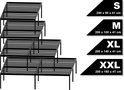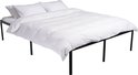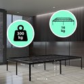 Le cadre de lit est entièrement en acier et est particulièrement solide et robuste. Les problèmes de sommiers à lattes cassés appartiennent au passé. Les protecteurs de sol évitent d'endommager les sols sensibles. Le lit offre beaucoup d'espace de rangement sous le sommier à lattes sans être encombrant. Plusieurs bagages rentrent sous le lit.