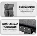 Avec une longueur allant jusqu'à 190 cm et une capacité de charge maximale de 150 kg, ce lit de camp convient à presque tout le monde. La conception garantit un endroit sûr et stable pour s'allonger, même pour les utilisateurs plus grands à la recherche d'un confort supplémentaire en camping, à la plage ou lors de soirées pyjama.