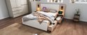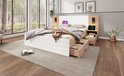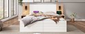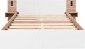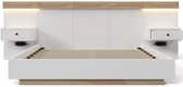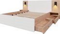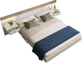 Ce qui est fourni si vous commandez ce produit. - 1x lit double Merax 160x200 cm avec 2 Tiroirs, lampe de lecture et connexion USB, cadre de lit et sommier à lattes comprenant 2 Tables de chevet, Chêne/ Wit (sans Matras) ; 1x manuel ; 1x fournitures d'assemblage.
