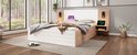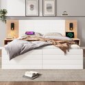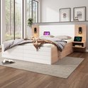 Lit Double Merax 160x200 cm avec 2 Tiroirs - Lampe de Lecture et Connexion USB - Cadre de Lit & Sommier à Lattes Comprenant 2 Tables de chevet - Chêne/ Wit (Sans Matras)