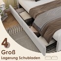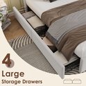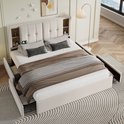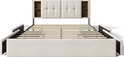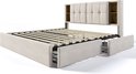 Lit Double Merax avec Chargement sans Fil et Connexion USB-C - Cadre de Lit Rembourré de Luxe avec 4 Tiroirs - Velours Beige