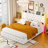 Lit double rembourré Merax - Lit pour 2 personnes avec tête de lit réglable - Grijs