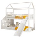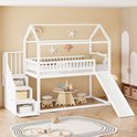 Lit enfant - lit superposé 90x200 cm - lit mezzanine avec toboggan et échelle de rangement - clôture haute - bois massif - blanc - sans matelas