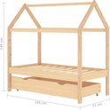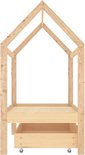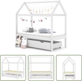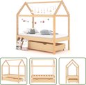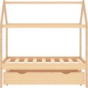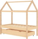Le lit est intelligemment conçu avec un cadre de style cabane dans les arbres auquel vous pouvez suspendre des rideaux de lit pour créer de l'intimité pour votre enfant. De plus, il peut également servir de coin lecture ou de maison de jeu pour votre enfant. Ce cadre de lit est en bois de pin massif et est extrêmement robuste et durable. Le sommier à lattes solide offre également le soutien nécessaire et est très confortable. De plus, le tiroir de lit inclus avec 2 poignées offre suffisamment d'espace de rangement pour ranger les vêtements pliés, les speelgoed, etc., gardant votre chambre propre et bien rangée. De plus, les roues qui glissent en douceur roulent aussi bien sur la moquette que sur les sols en bois ! Ce cadre de lit convient à un matelas de 70x140 cm.