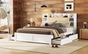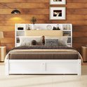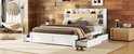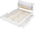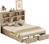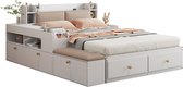 Lit Merax 160x200 cm avec rangements - Wit - Structure en bois - Tiroirs coulissants et tête de lit rabattable