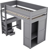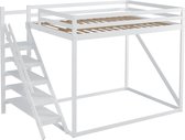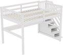 Lit mezzanine - 140x 200 cm - lit mezzanine enfant - avec tiroirs de rangement et bureau sous le lit - blanc - sans matelas