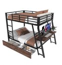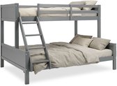 Lit superposé 140x200 cm - avec escalier avec placard de rangement - barrière haute - lit enfant - couleur bois - sans matelas
