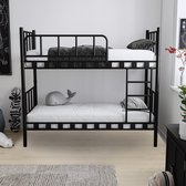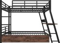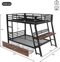 Lit mezzanine en métal Pugsdrly 90 x 200 cm, enceinte de sécurité unique avec fenêtre, échelle de sécurité avec armoire, noir