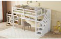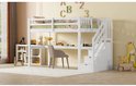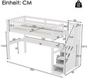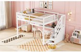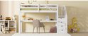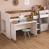 Lit mezzanine enfant 90 x 200 avec tiroirs de rangement et bureau sous le lit, blanc