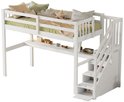 Ce lit en bois massif est fabriqué en bois de pin finement poncé et verni pour lui donner une texture et une élégance uniques. L'escalier dispose d'un espace de rangement spacieux où vous pourrez ranger vos livres, objets rarement utilisés, etc. pour garder votre chambre bien rangée.