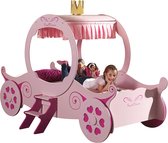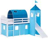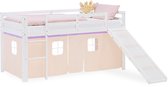 Ce lit mezzanine robuste et blanc avec revêtement en tissu rose est le rêve de tout enfant. Le rideau en tissu est fixé au cadre du lit à l'aide de boucles. Le rideau peut donc être retiré et lavé. Pour assembler le tunnel, utilisez les tiges en plastique fournies. Ceux-ci sont ensuite serrés entre le matelas et le bord du lit. Selon l'espace disponible, l'échelle, le toboggan et la tour peuvent être montés à gauche ou à droite.