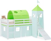 - Montage et stabilité : Avant utilisation, assurez-vous toujours que l'échelle/escabeau est solidement fixé à ce lit mezzanine et que le toboggan est correctement serré. Vérifiez également régulièrement que toutes les fixations sont correctement fixées.