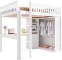 Lit mezzanine Merax 140x200 cm - avec bureau - armoire - 3 tiroirs - escalier - lit en bois avec espace de rangement - lit enfant avec bureau - Wit - sans Matras