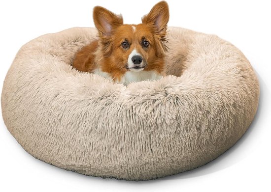 Lit pour chien - Coussin pour chien panier à beignets apaisant pour Chats et Chiens - Taupe - 76 x 76 cm - Housse amovible lavable en machine avec fermeture éclair - M
